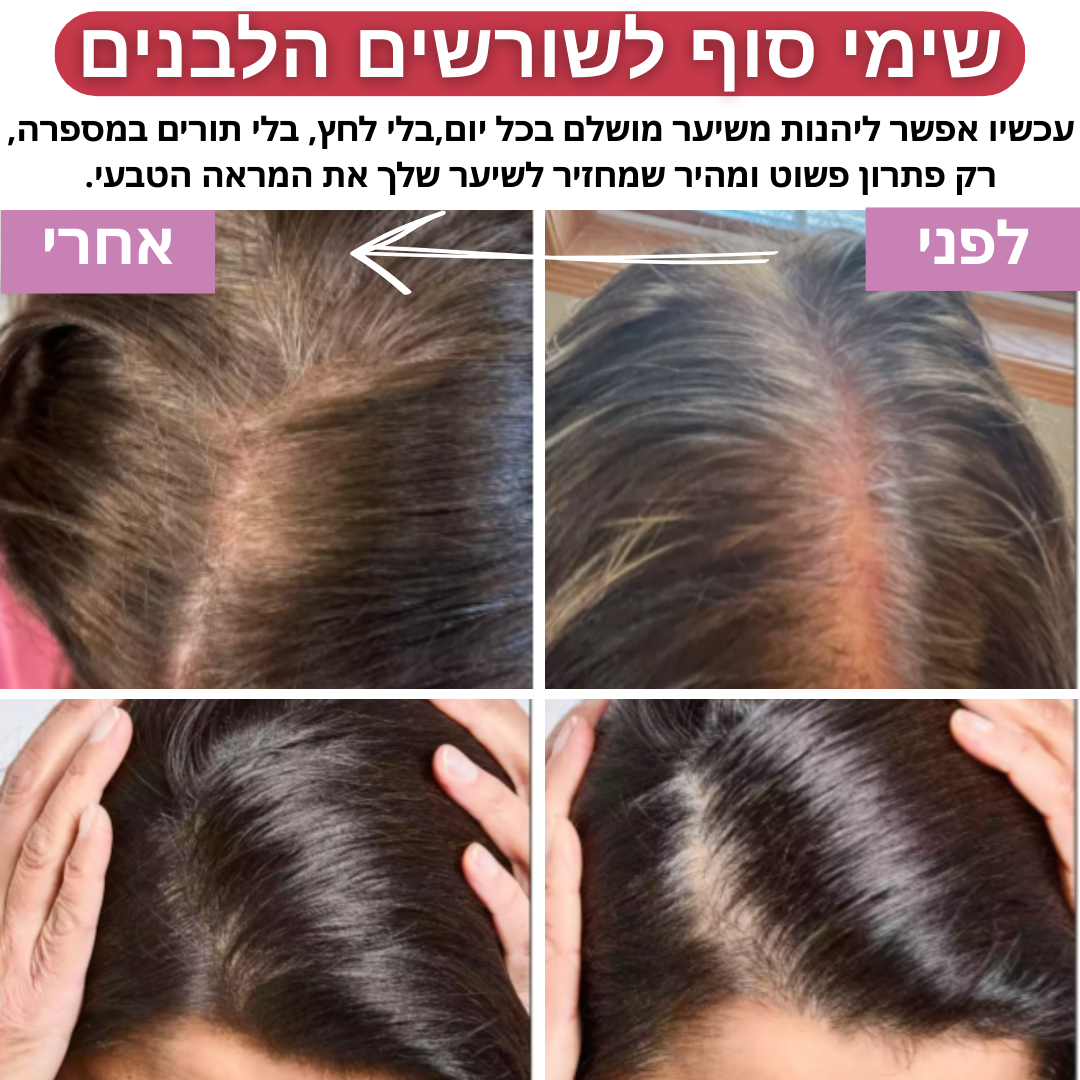 כל אחת מכירה את הרגע הזה מול המראה,שורשים לבנים שמבצבצים, אזורים דלילים בקו המצח, ואין זמן או כוח לקבוע תור במספרה,האבקה שלנו תפורה עלייך!